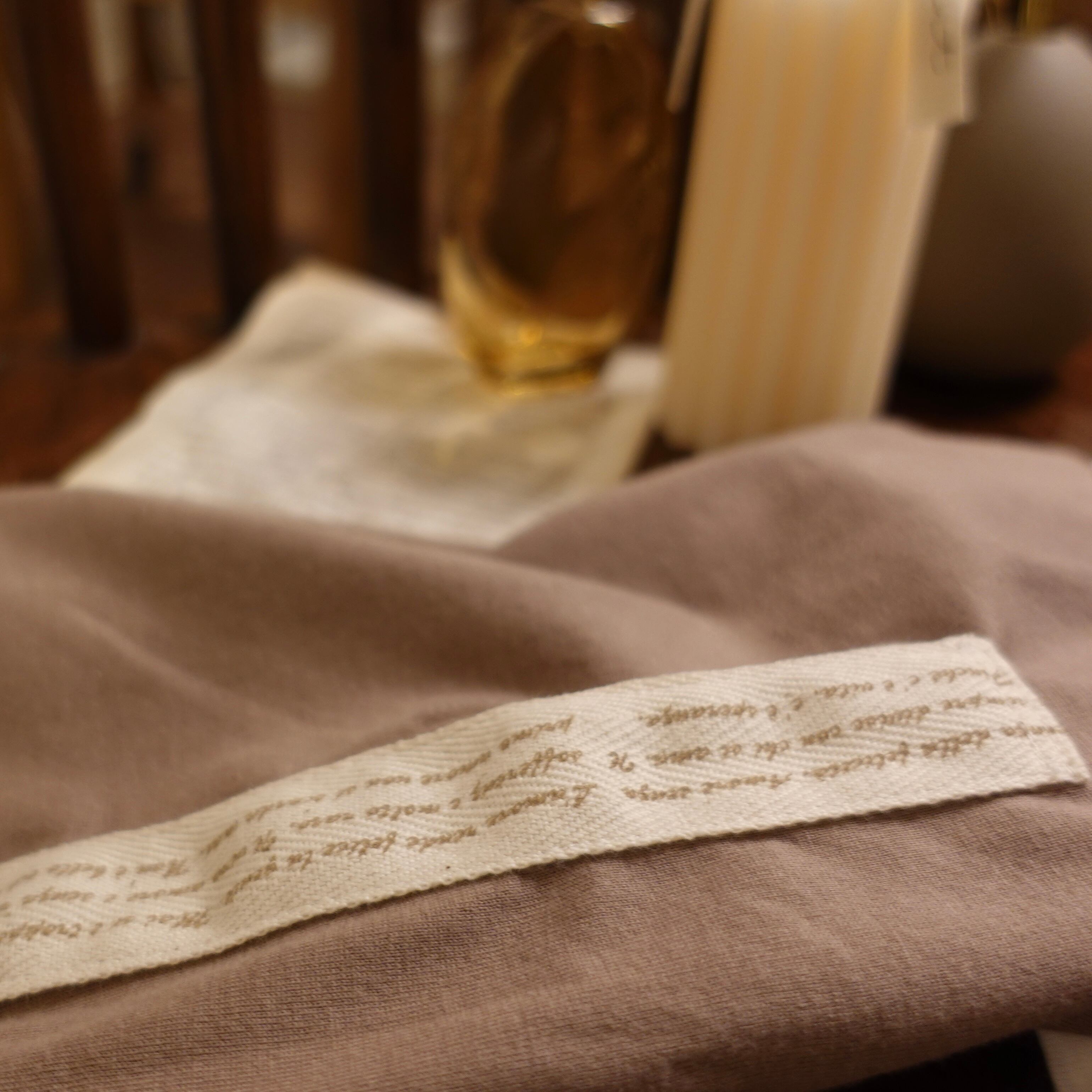 文字デザインが施されたリボンがかわいい、半袖のコットンTシャツです。