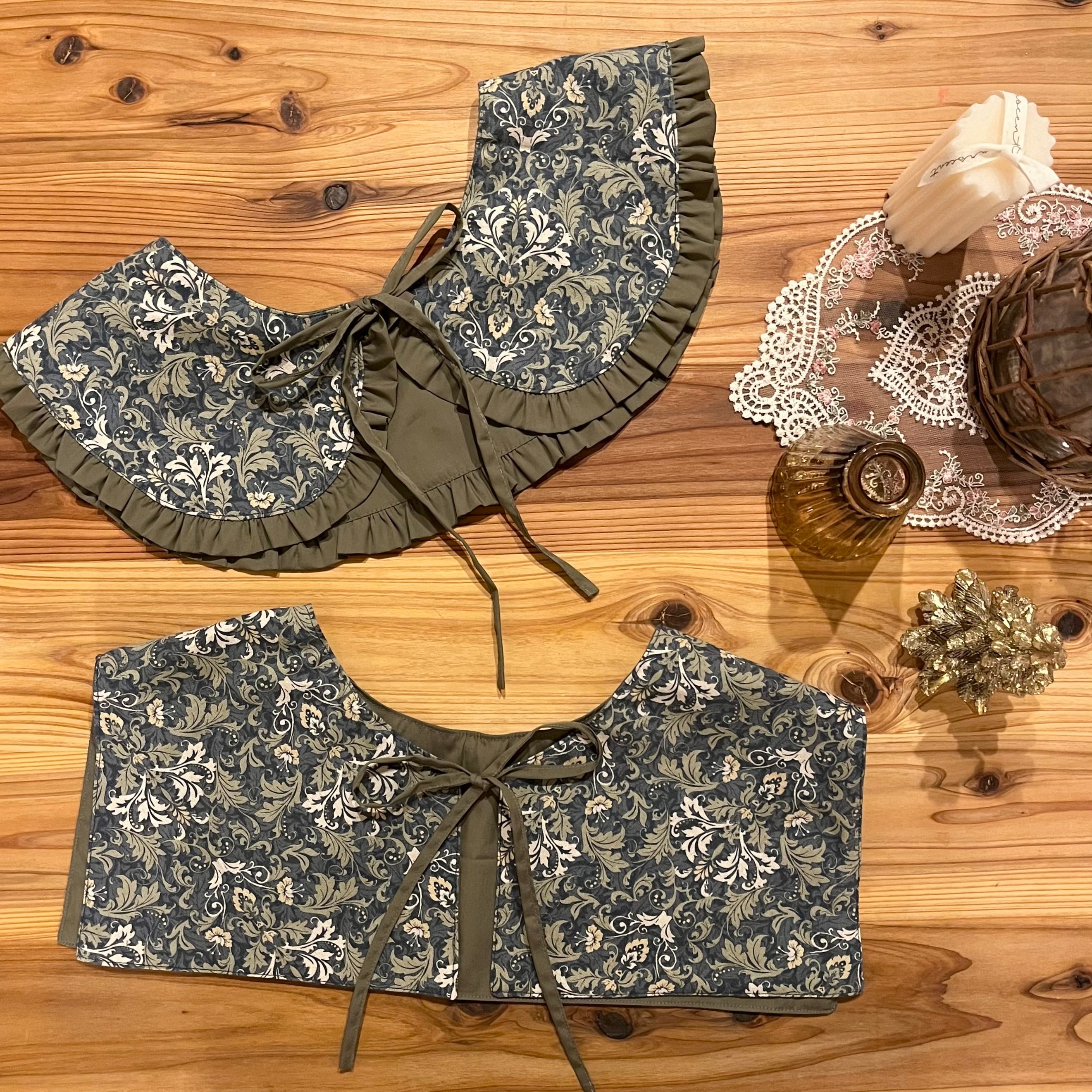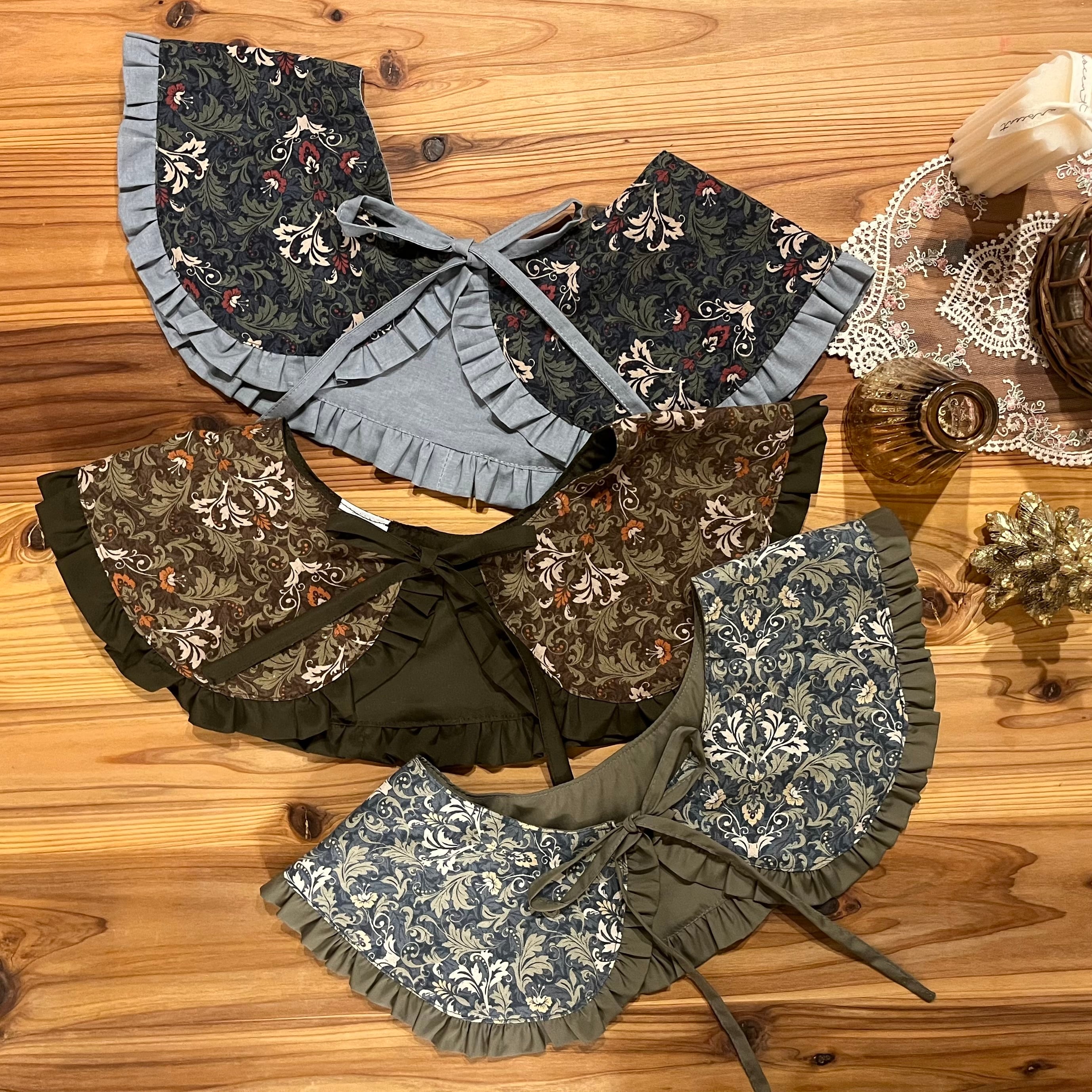 ボタニカル柄とシックな秋カラーがおしゃれな付け襟です。