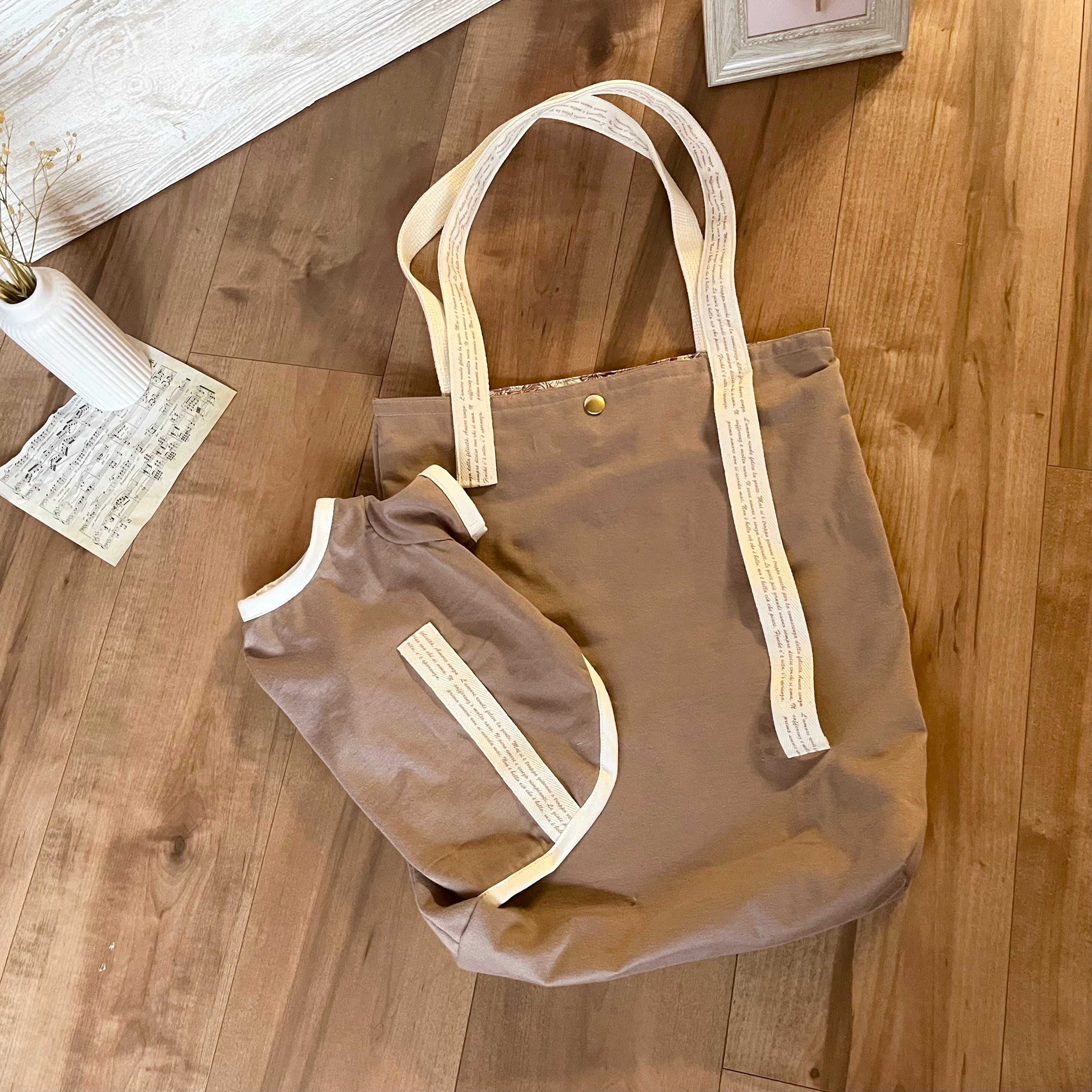 わんちゃん用Tシャツとお揃いデザインのトートバッグ、ハンドバッグです。